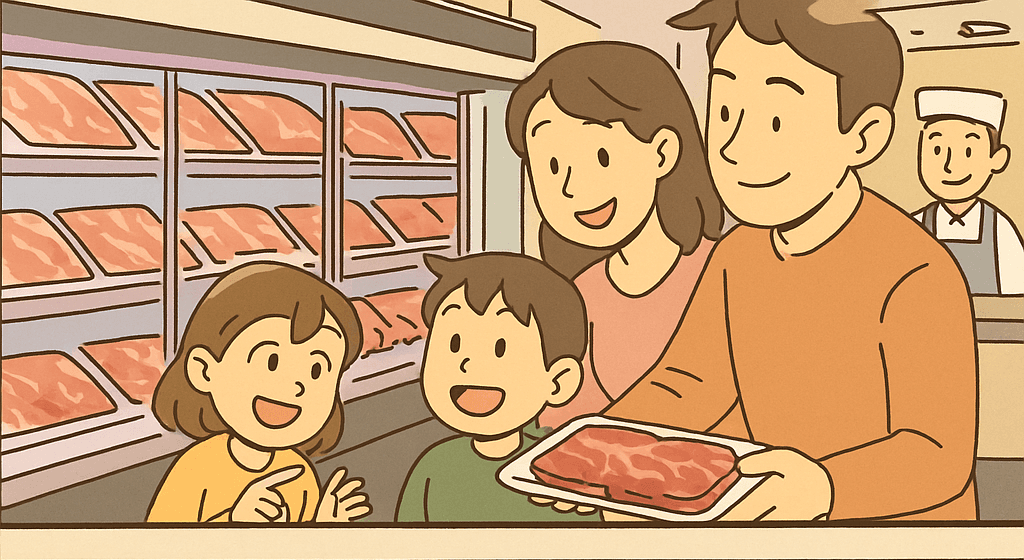 1층 축산물판매장에서 고기를 구매해주세요